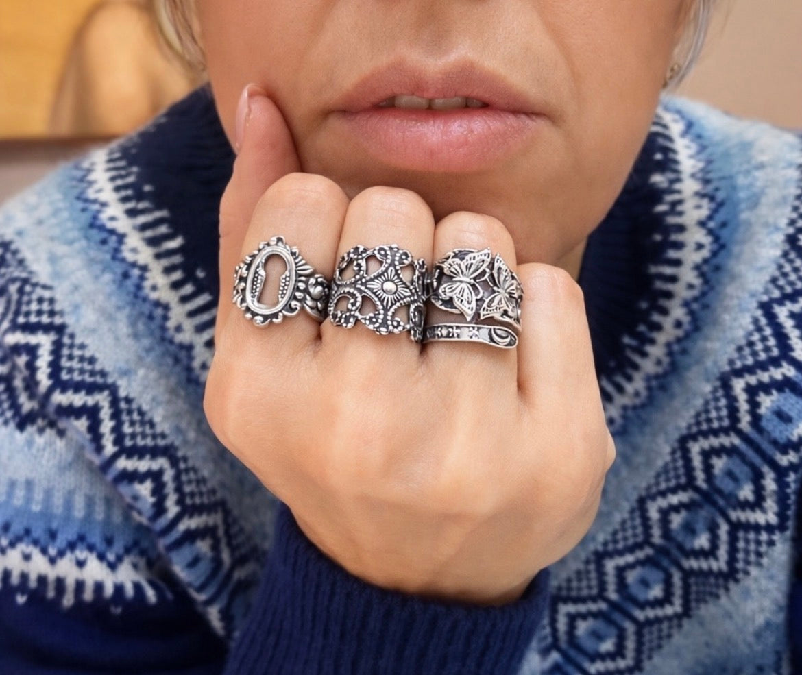 Ridò nuova vita a oggetti di antiquariato trasformandoli in anelli unici.