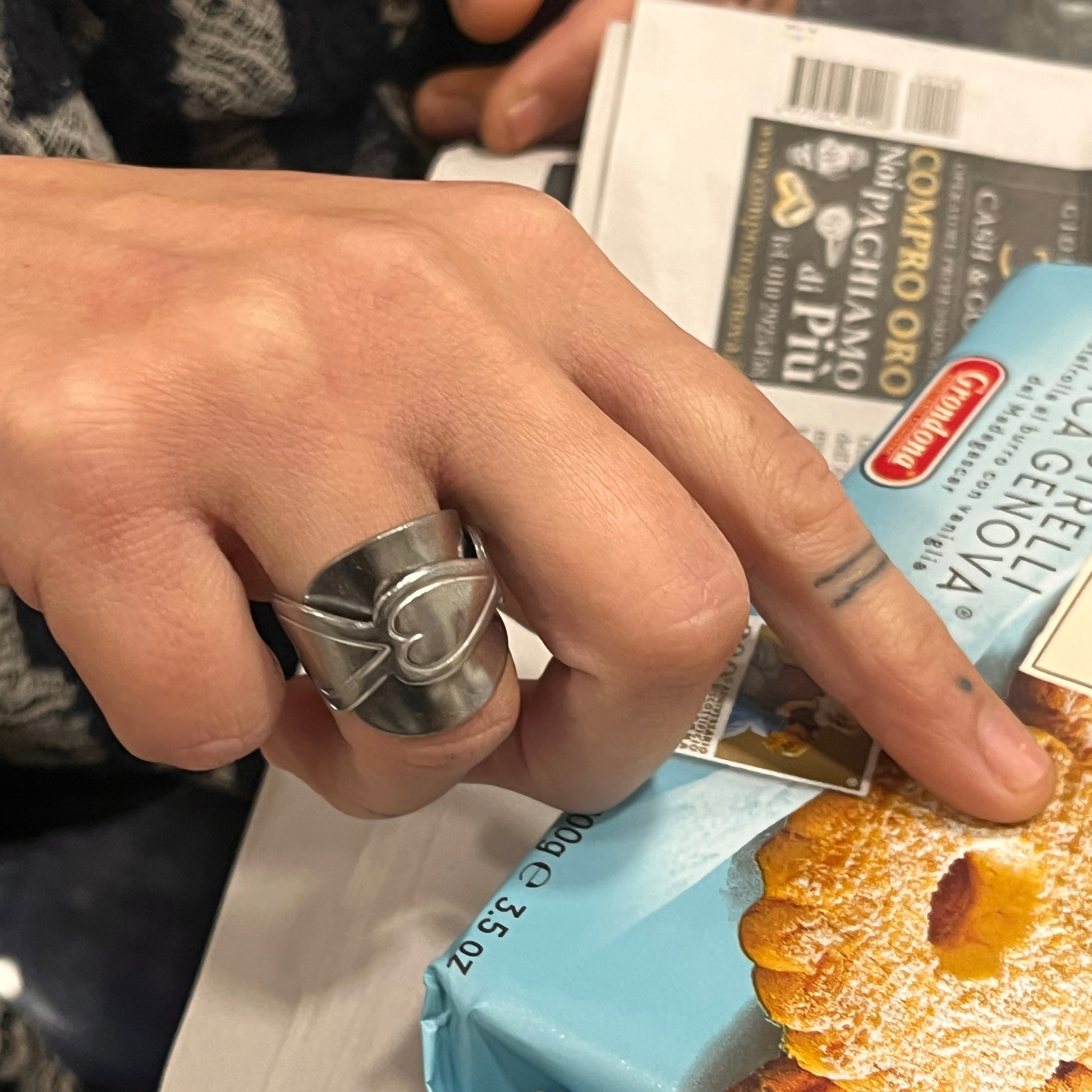 Scopri l’eleganza senza tempo di questo anello unico creato artigianalmente utilizzando un intero cucchiaino in ACCIAIO