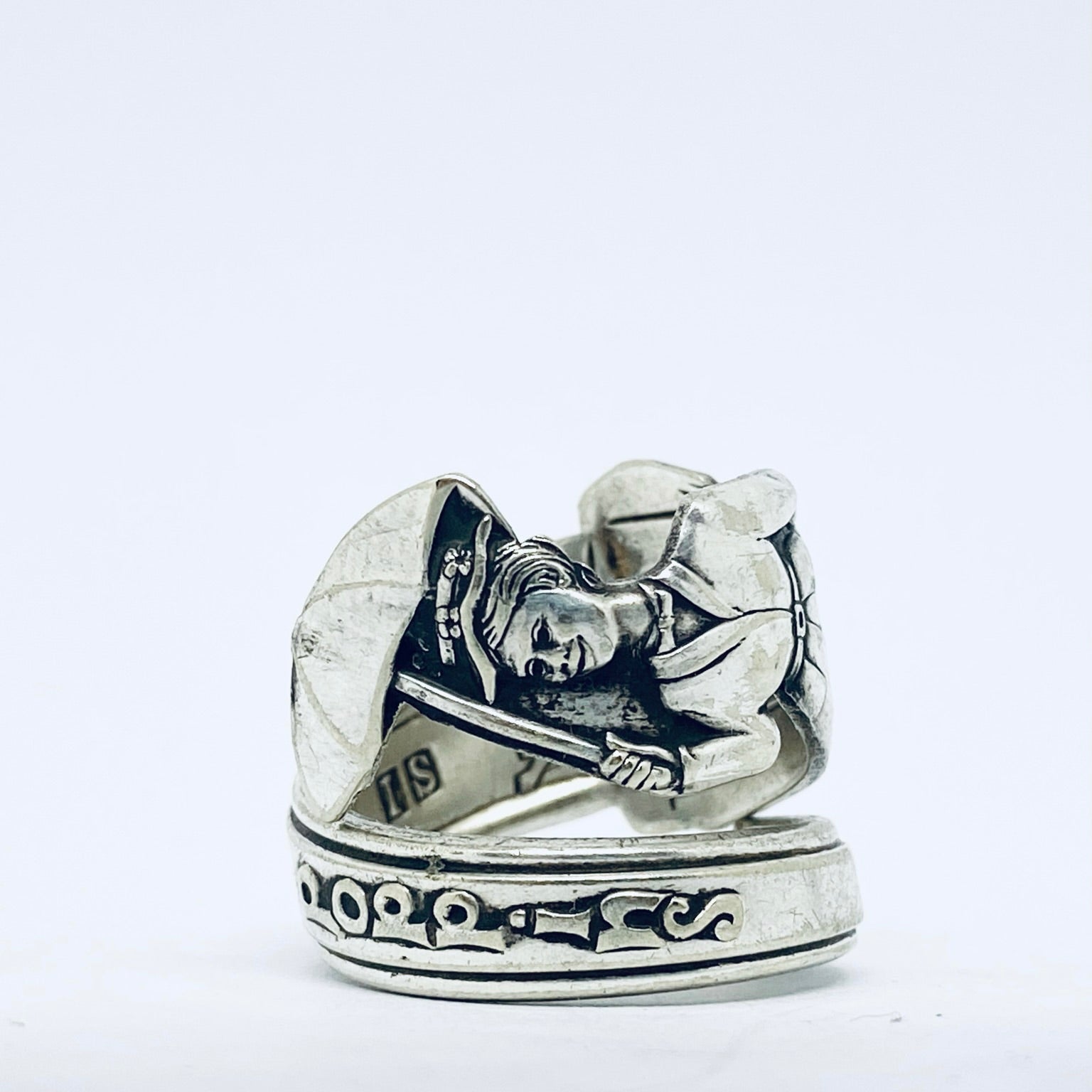 Scopri l’eleganza senza tempo di questo anello unico creato artigianalmente utilizzando il manico di un antico cucchiaino in argento 925 risalente alla prima metà del Novecento e proveniente dall’Olanda.