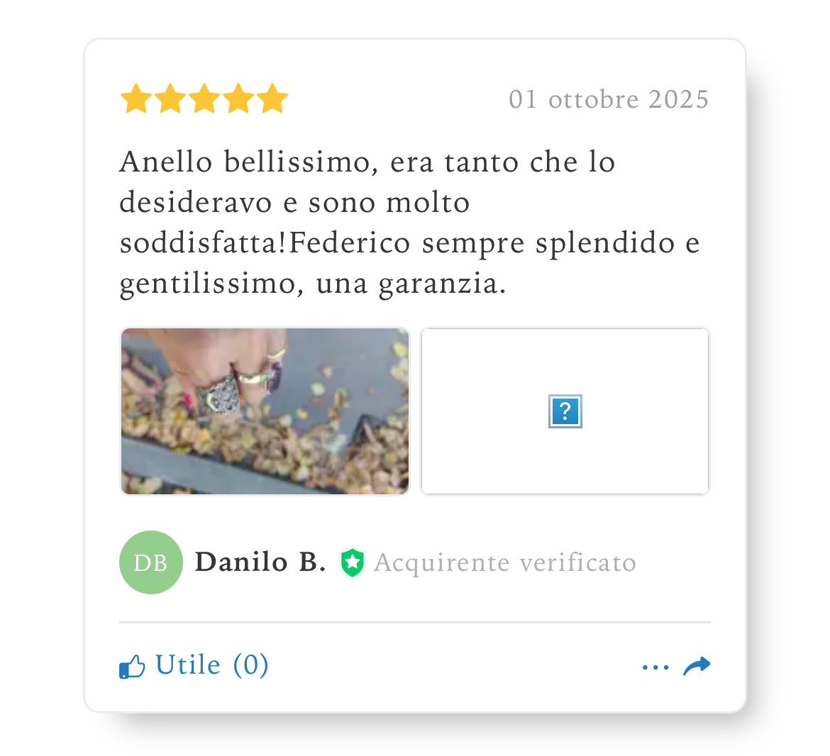 Questo mi permette di realizzare il tuo anello con cura, non lavorare di notte ed organizzare la spedizione in tempo.