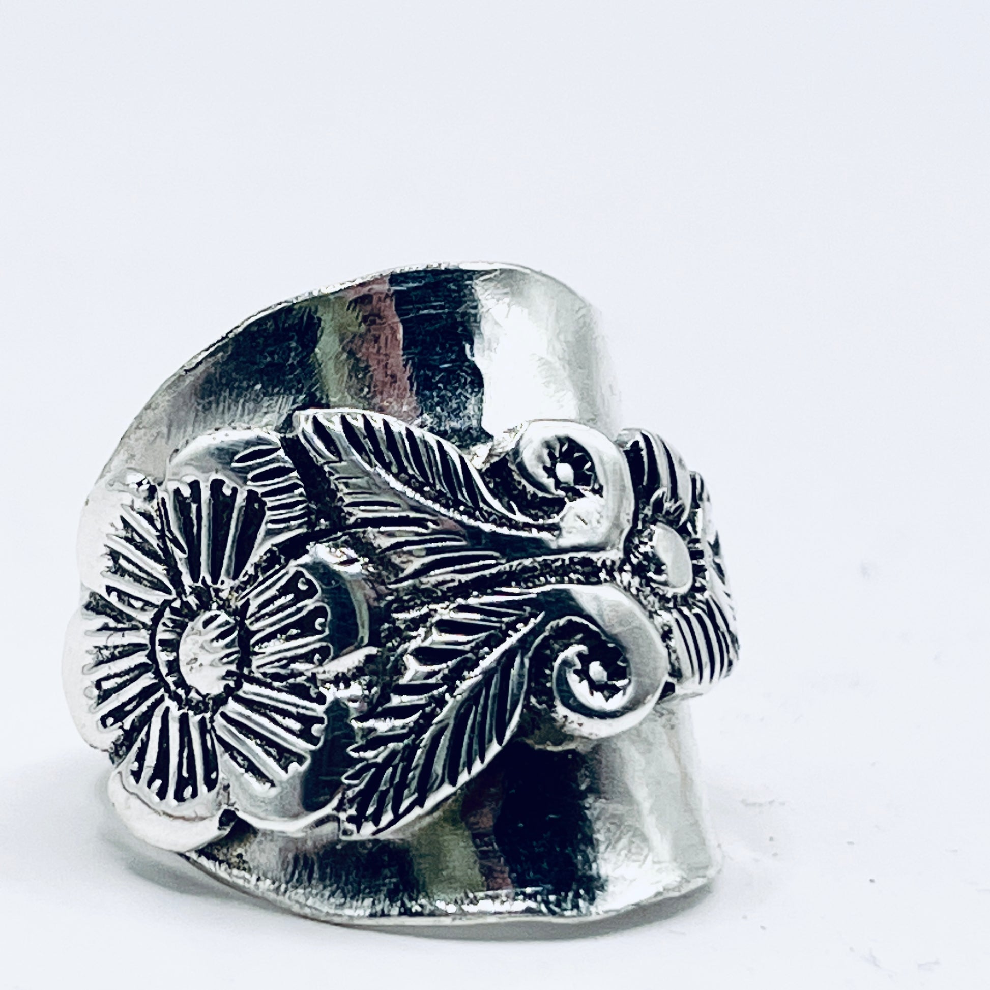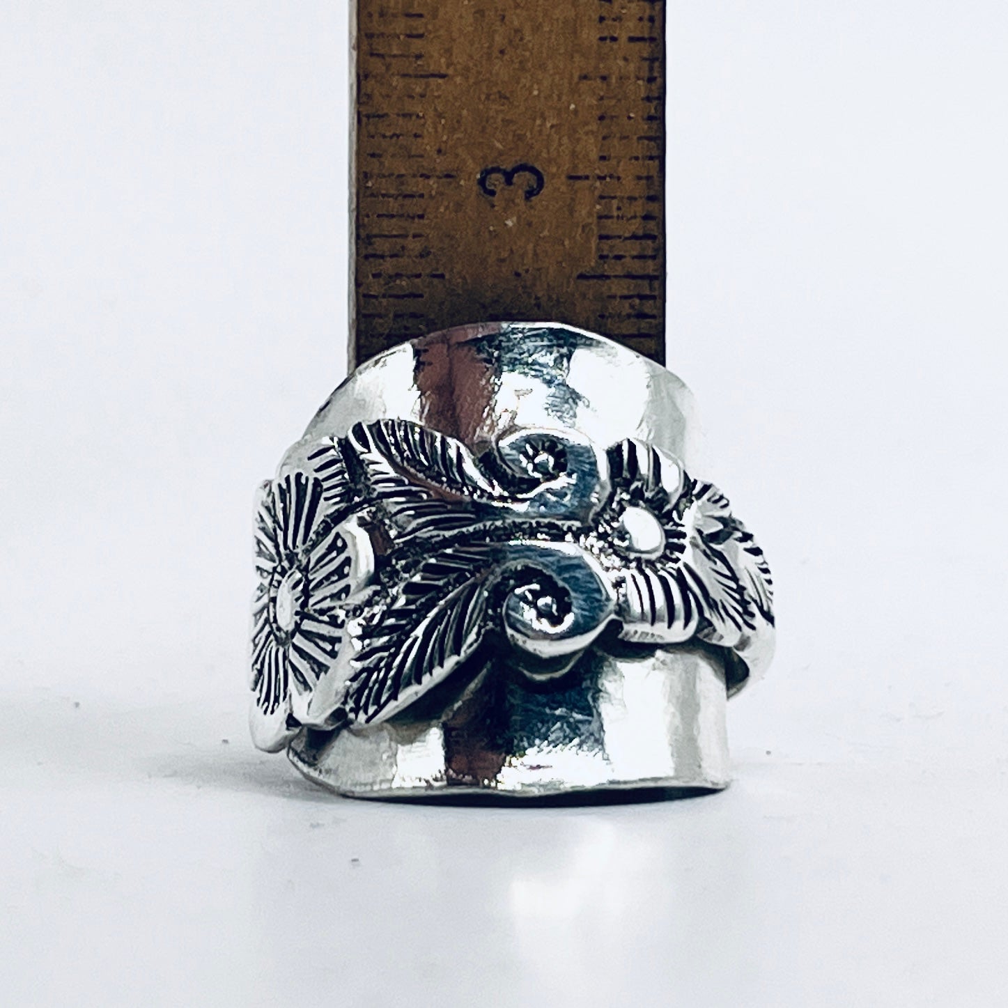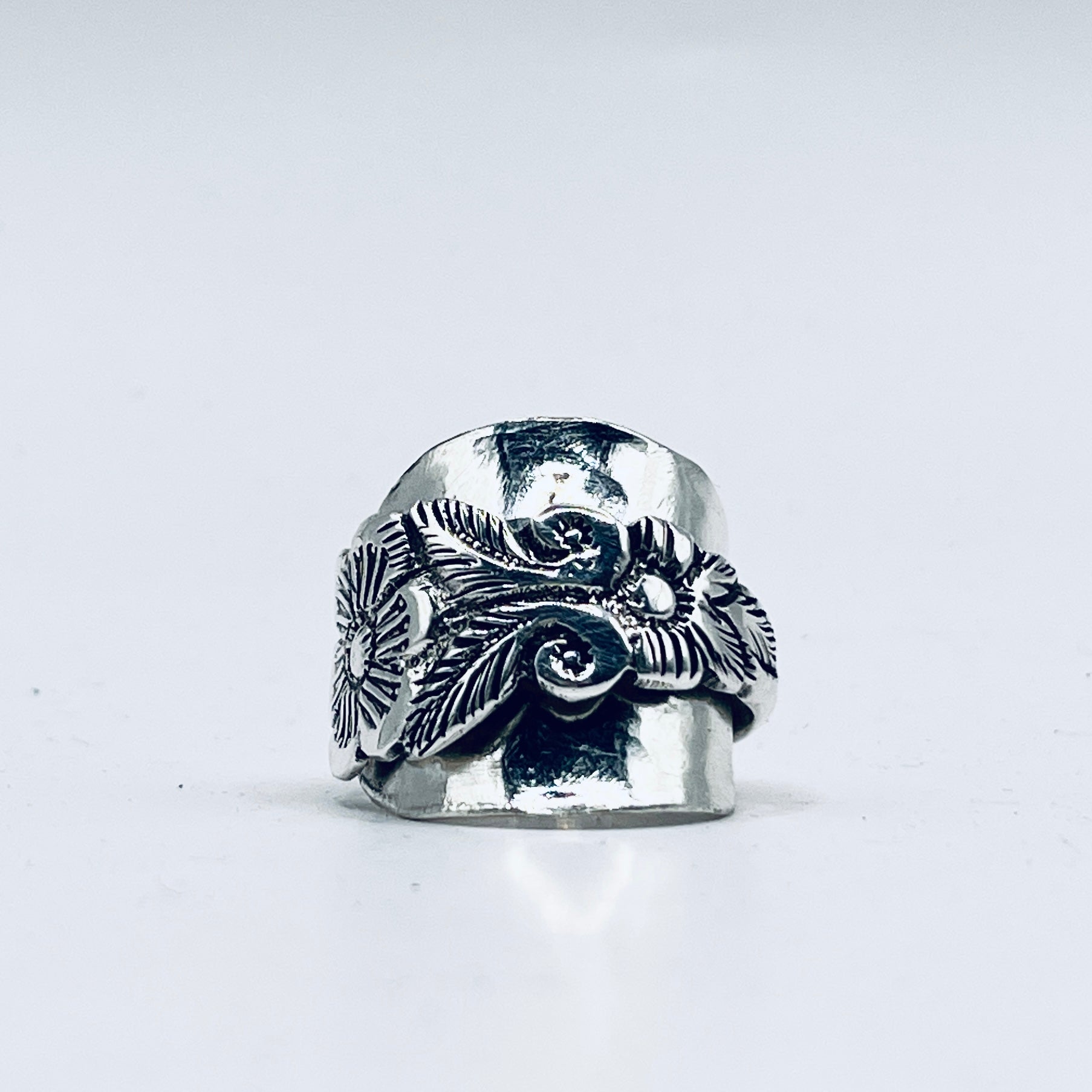 Anello Artigianale FIORE PERÙ Mod. INTERO MARTELLATO Realizzato con intero Antico Cucchiaino in Argento 925(Prima Metà del ’900)