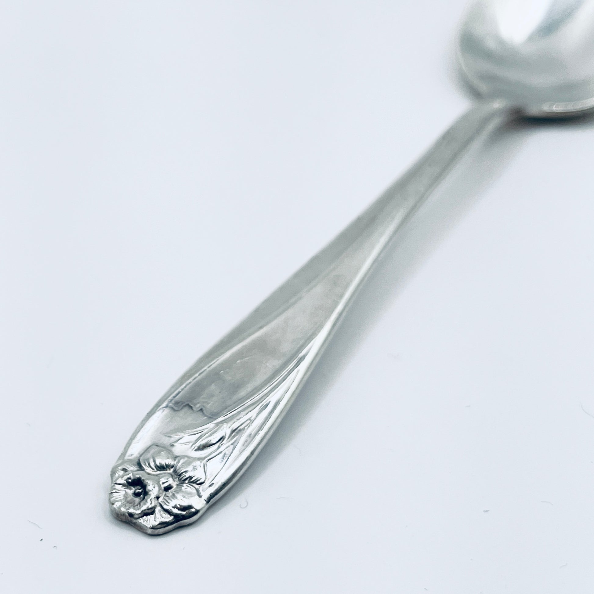 Scopri l’eleganza senza tempo di questo anello unico creato artigianalmente utilizzando il manico di un antico cucchiaino in lega d’argento risalente alla prima metà del Novecento.