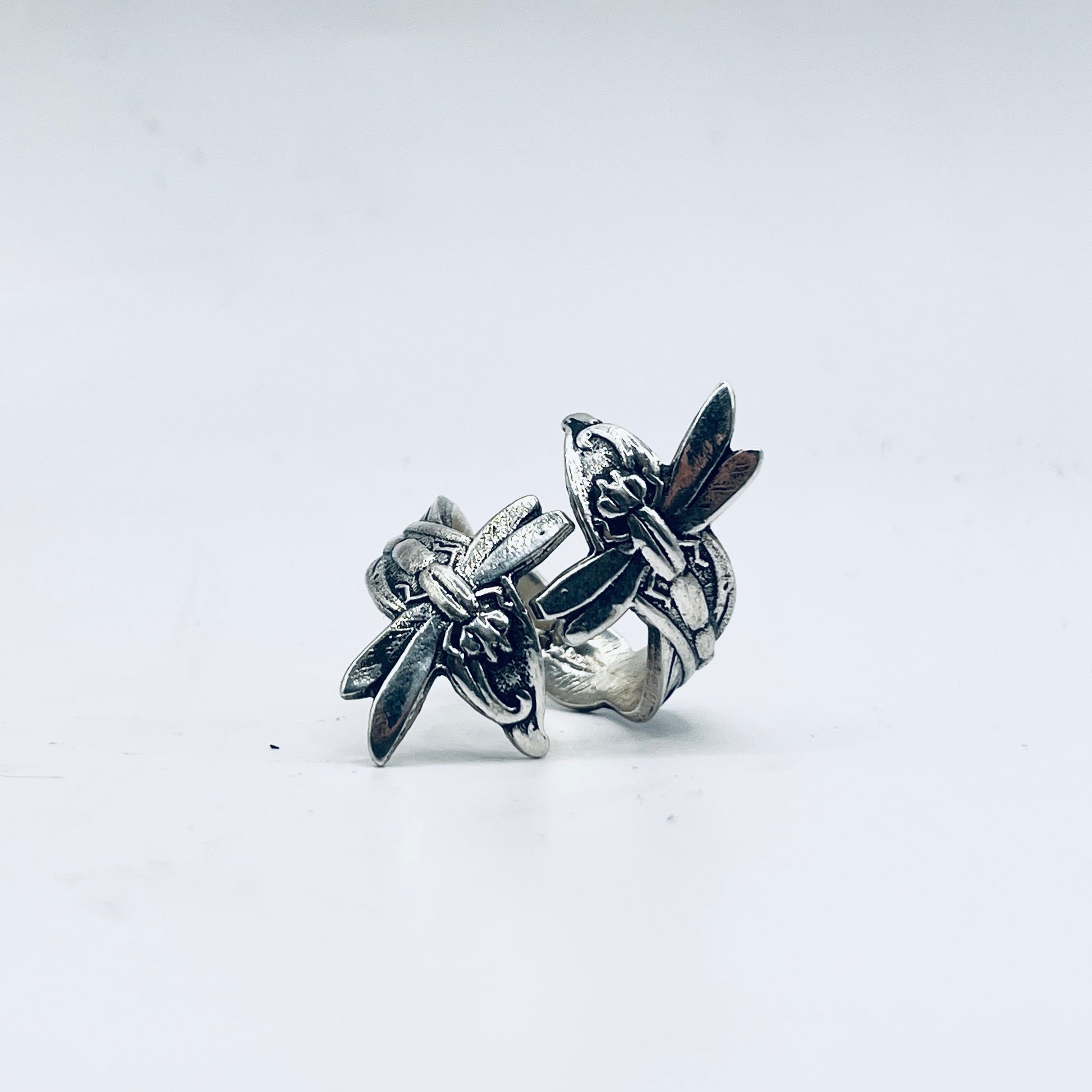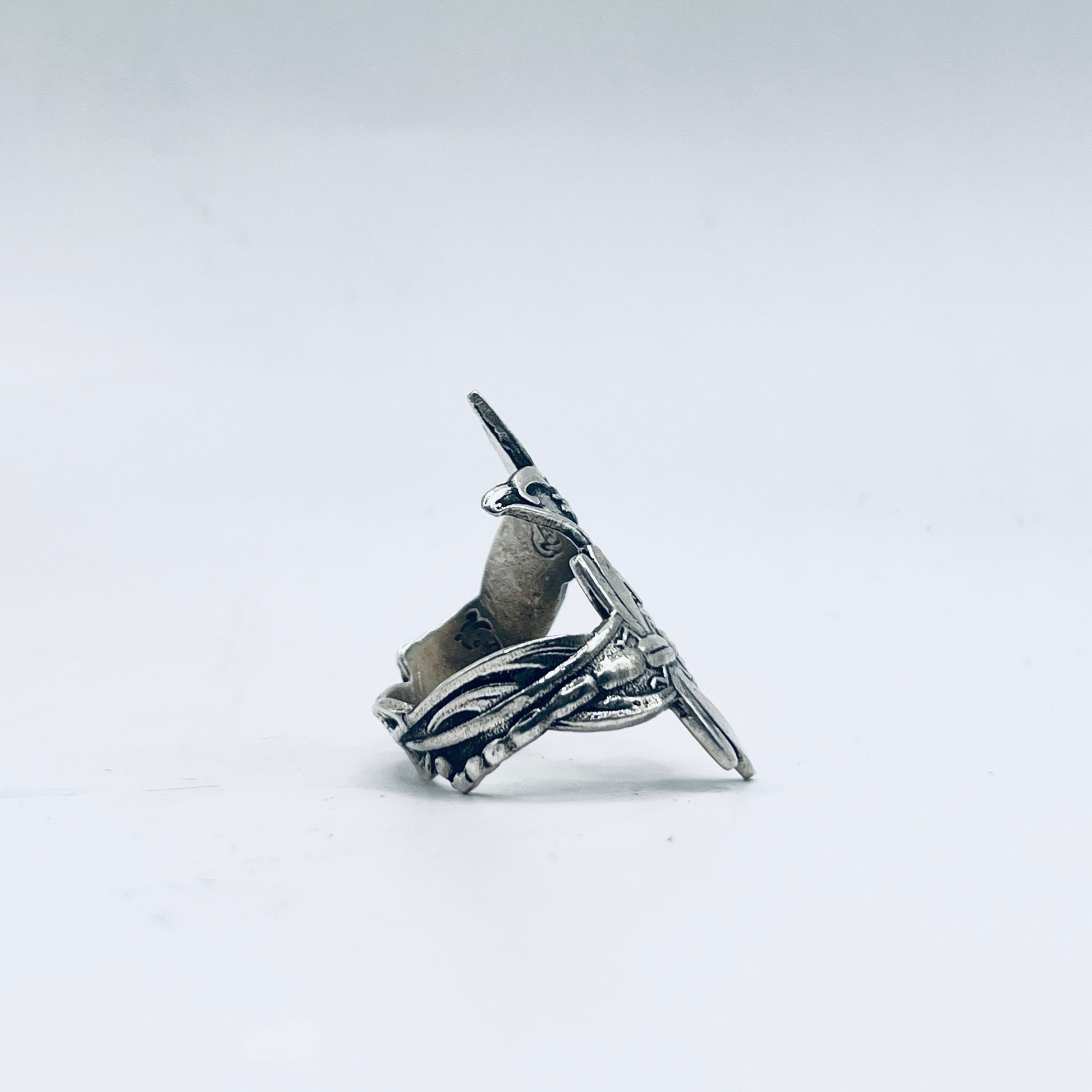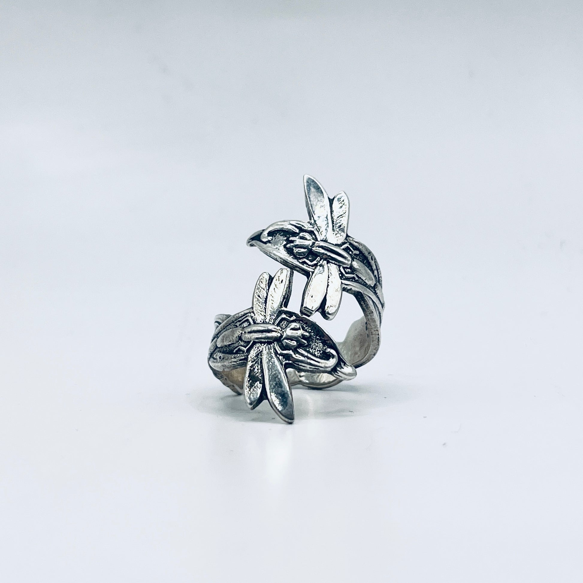 Anello Artigianale DUE LIBELLULE Mod. SPIRALE Realizzato con Antica posata in Argento (Prima Metà del ’900)