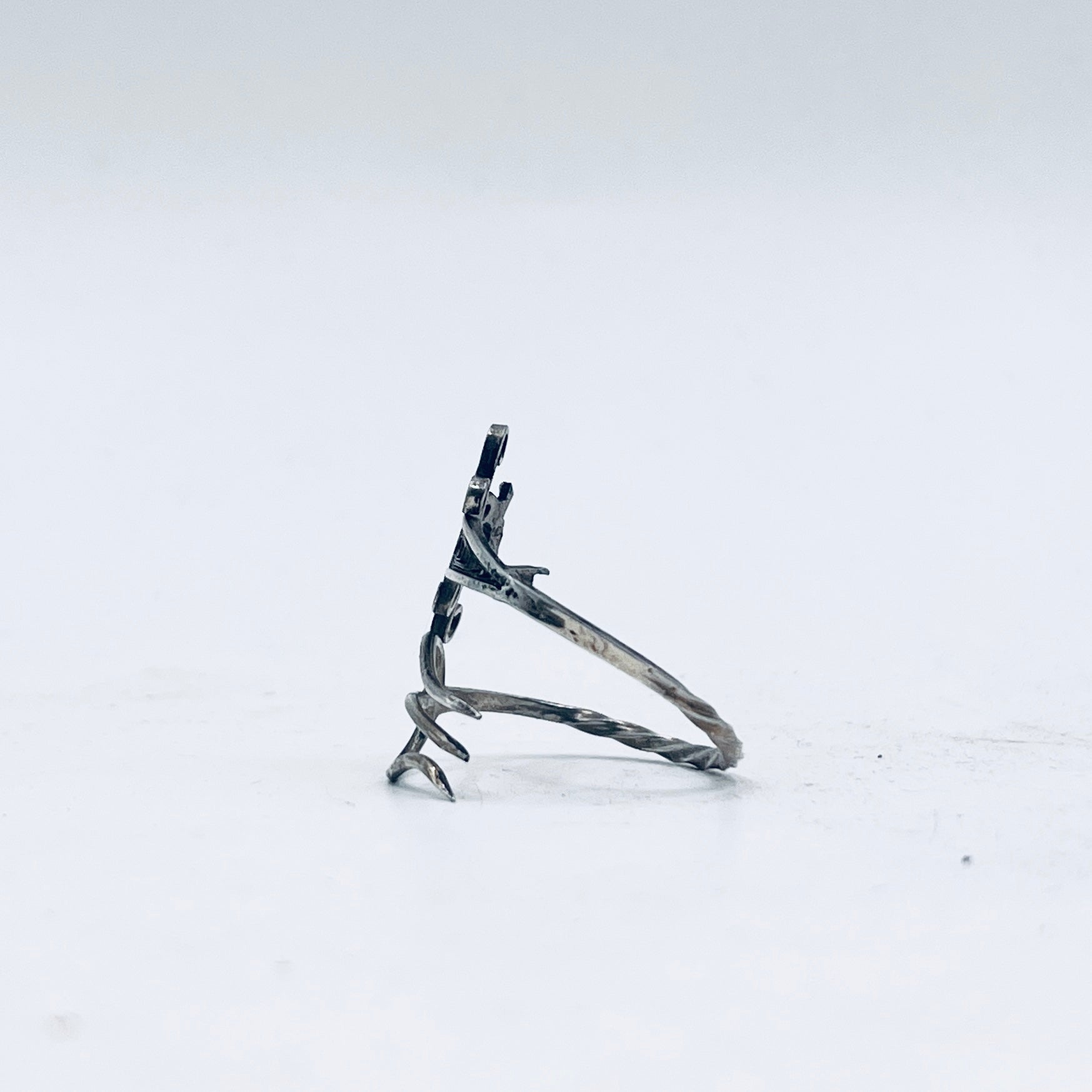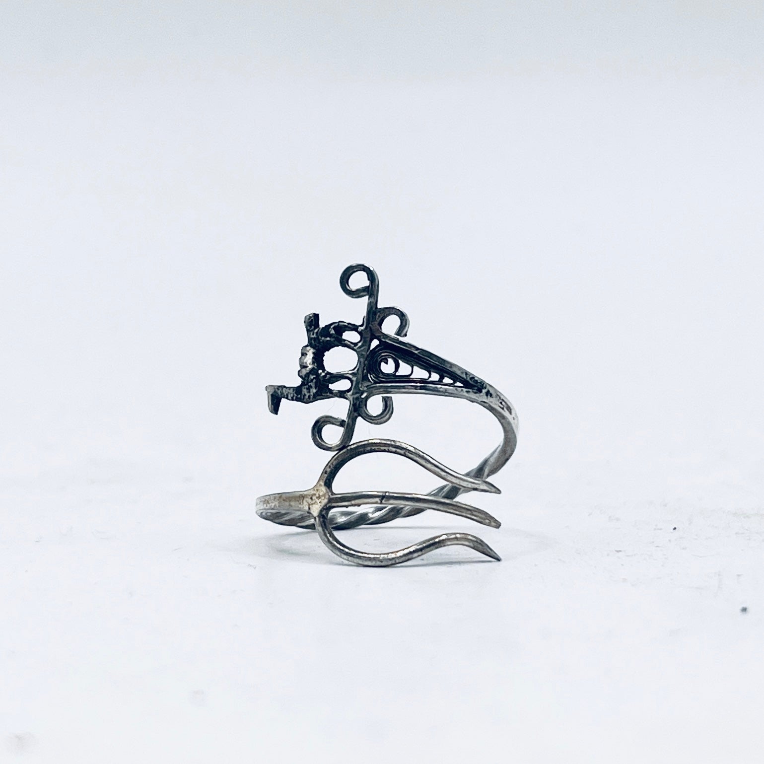 Scopri l’eleganza senza tempo di questo anello unico creato artigianalmente utilizzando un’intera antica forchettina da aperitivo Peruviana in argento 925 risalente agli anni cinquanta.