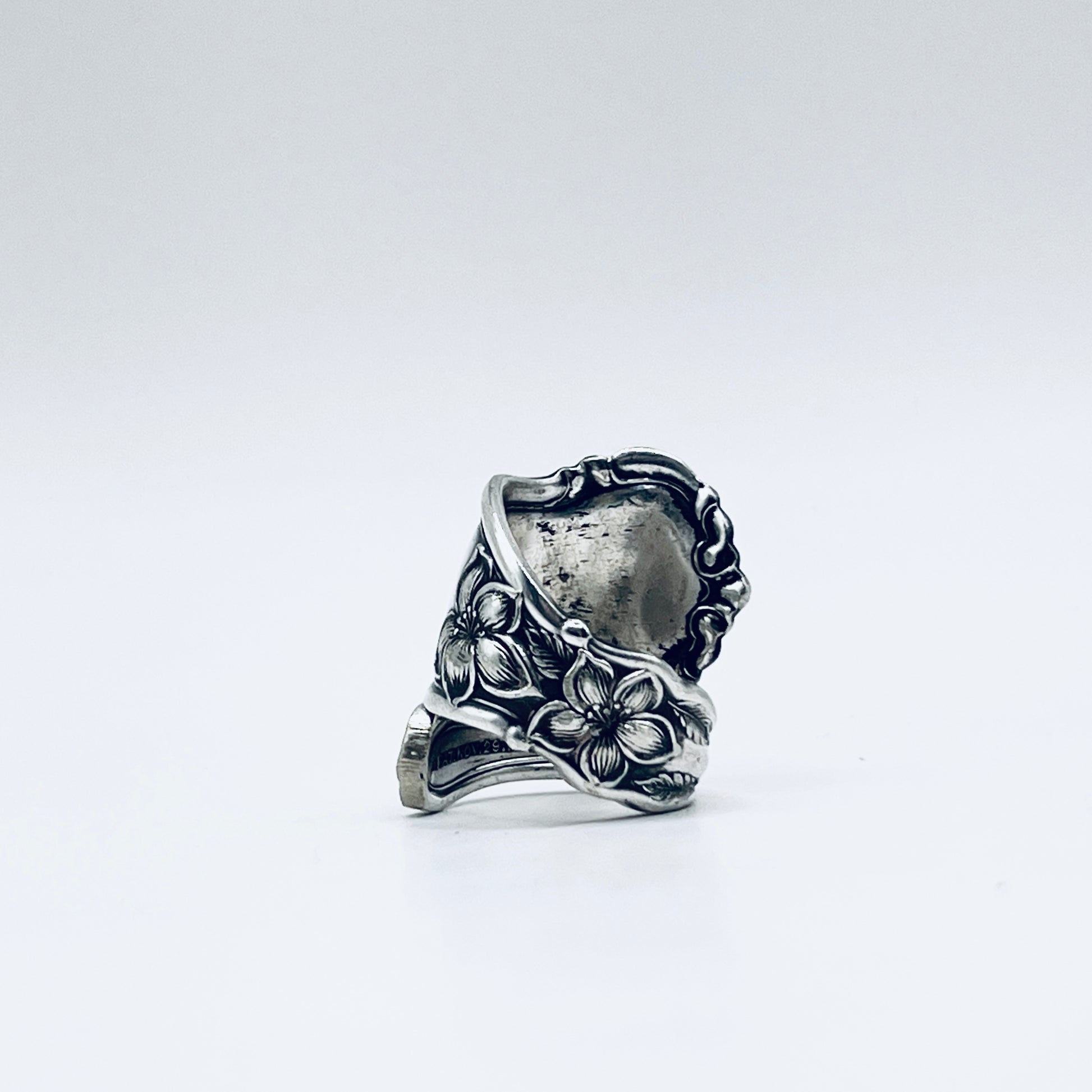 Scopri l’eleganza senza tempo di questo anello unico creato artigianalmente utilizzando il manico di un antico cucchiaino in lega d’argento risalente alla prima metà del Novecento.