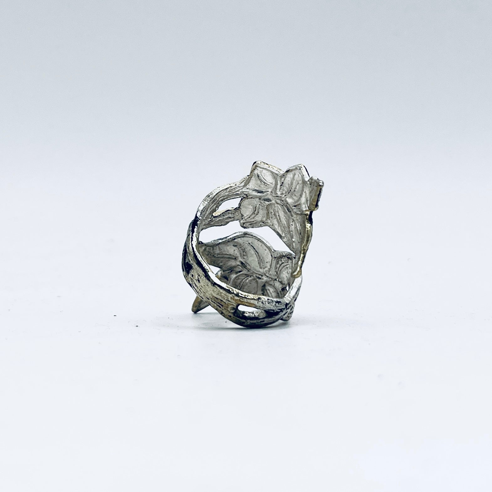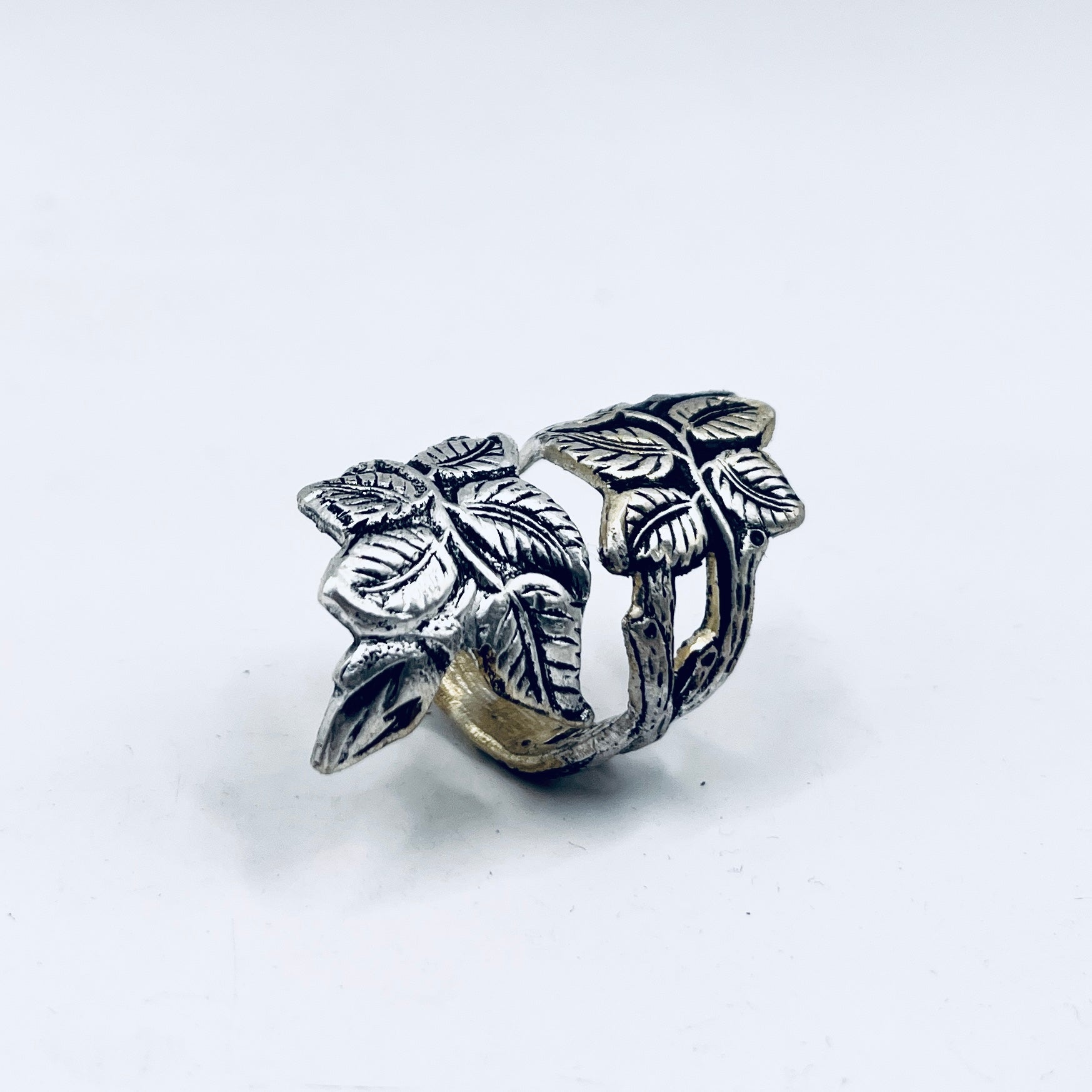 Anello Artigianale FOGLIE ROSE Mod. SPIRALE Realizzato con Antica posata in Argento (Prima Metà del ’900)