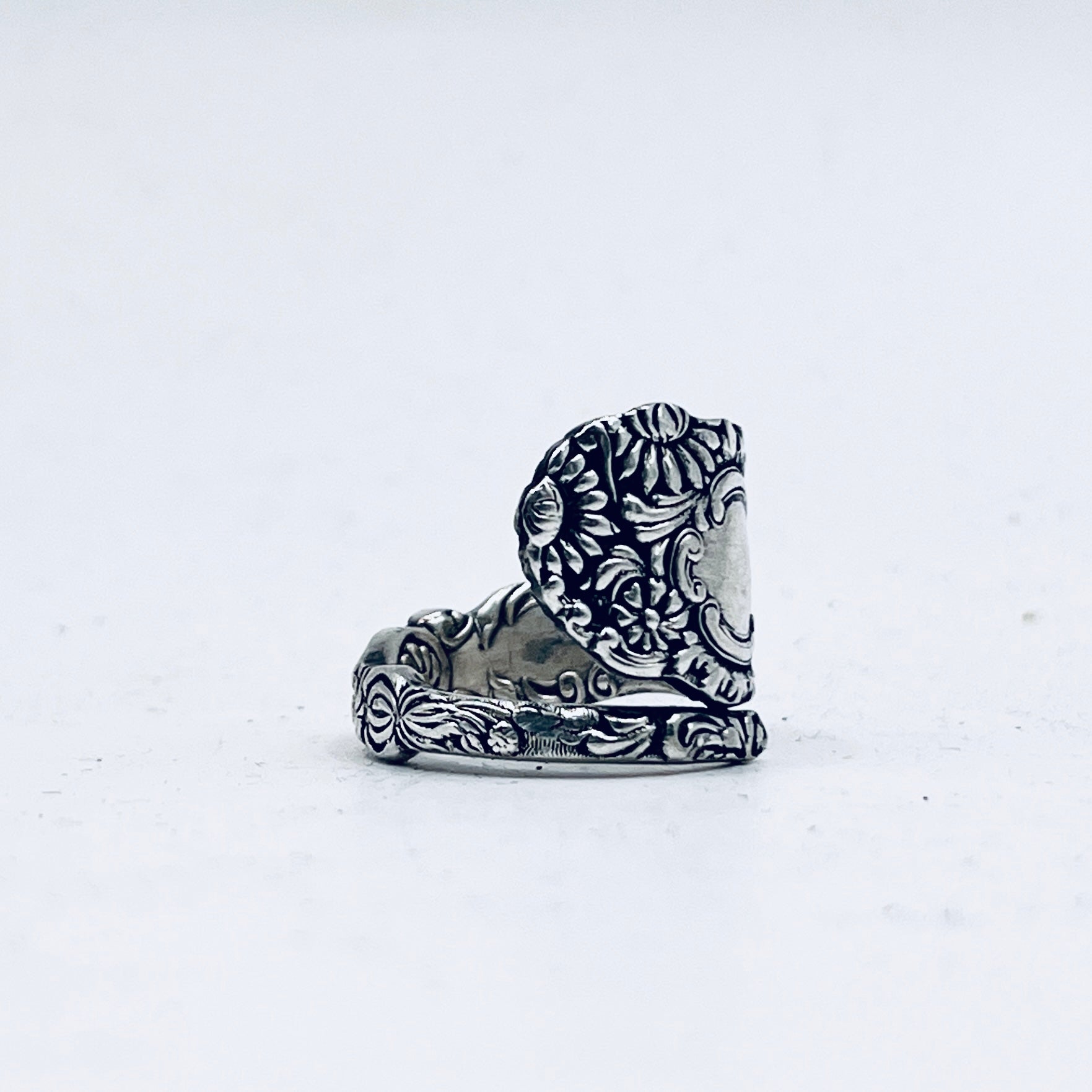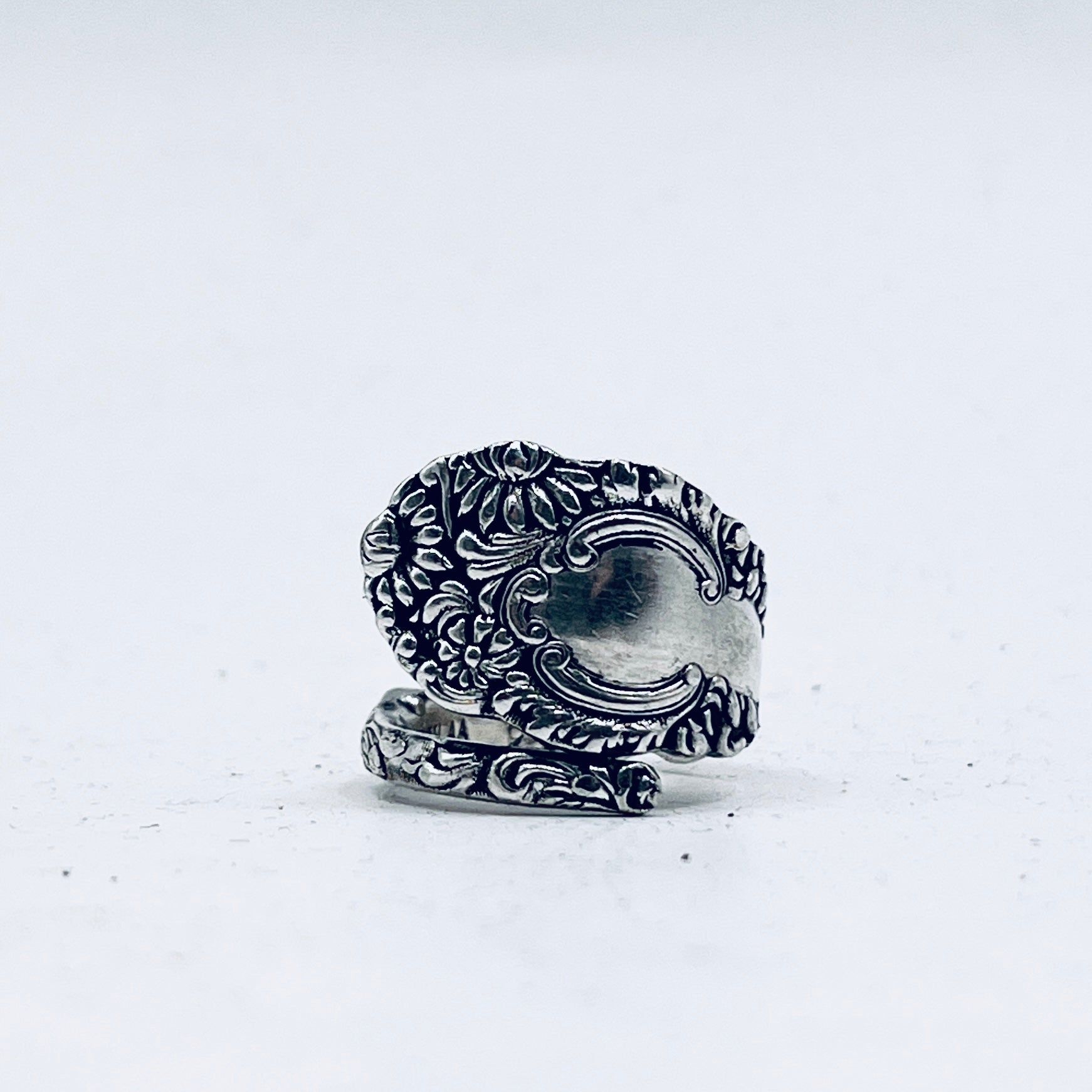 Anello Artigianale Mod. SPIRALE FIORI SUPER Realizzato con Antica posata in Argento (Prima Metà del ’900)