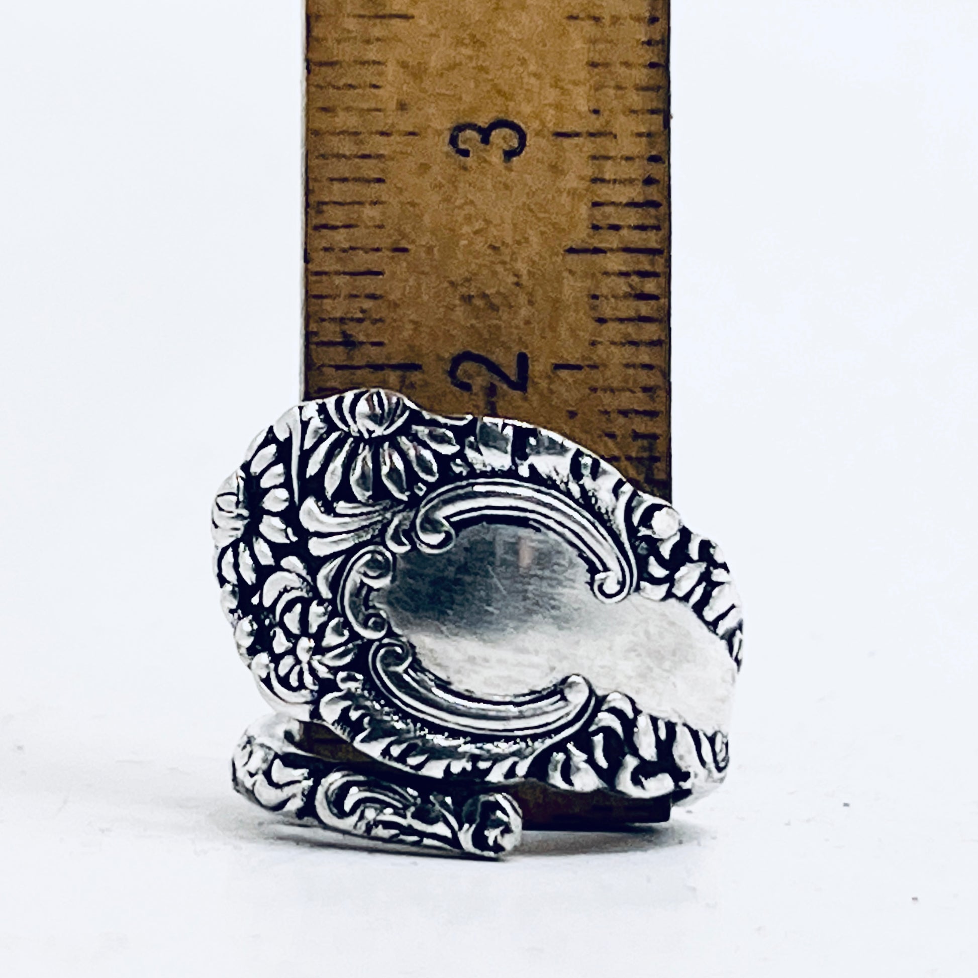 Scopri l’eleganza senza tempo di questo anello unico creato artigianalmente utilizzando il manico di un antico cucchiaino in lega d’argento risalente alla prima metà del Novecento.
