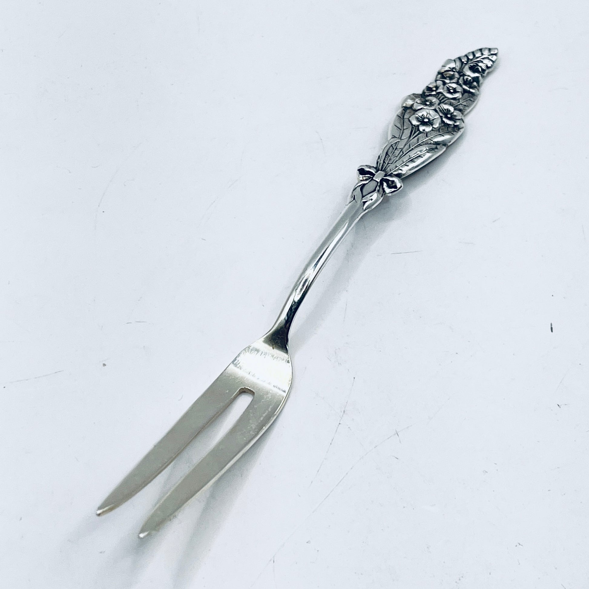 Sul manico fiorisce un non ti scordar di me, piccolo ma intenso, simbolo di legami eterni e affetti che non svaniscono.