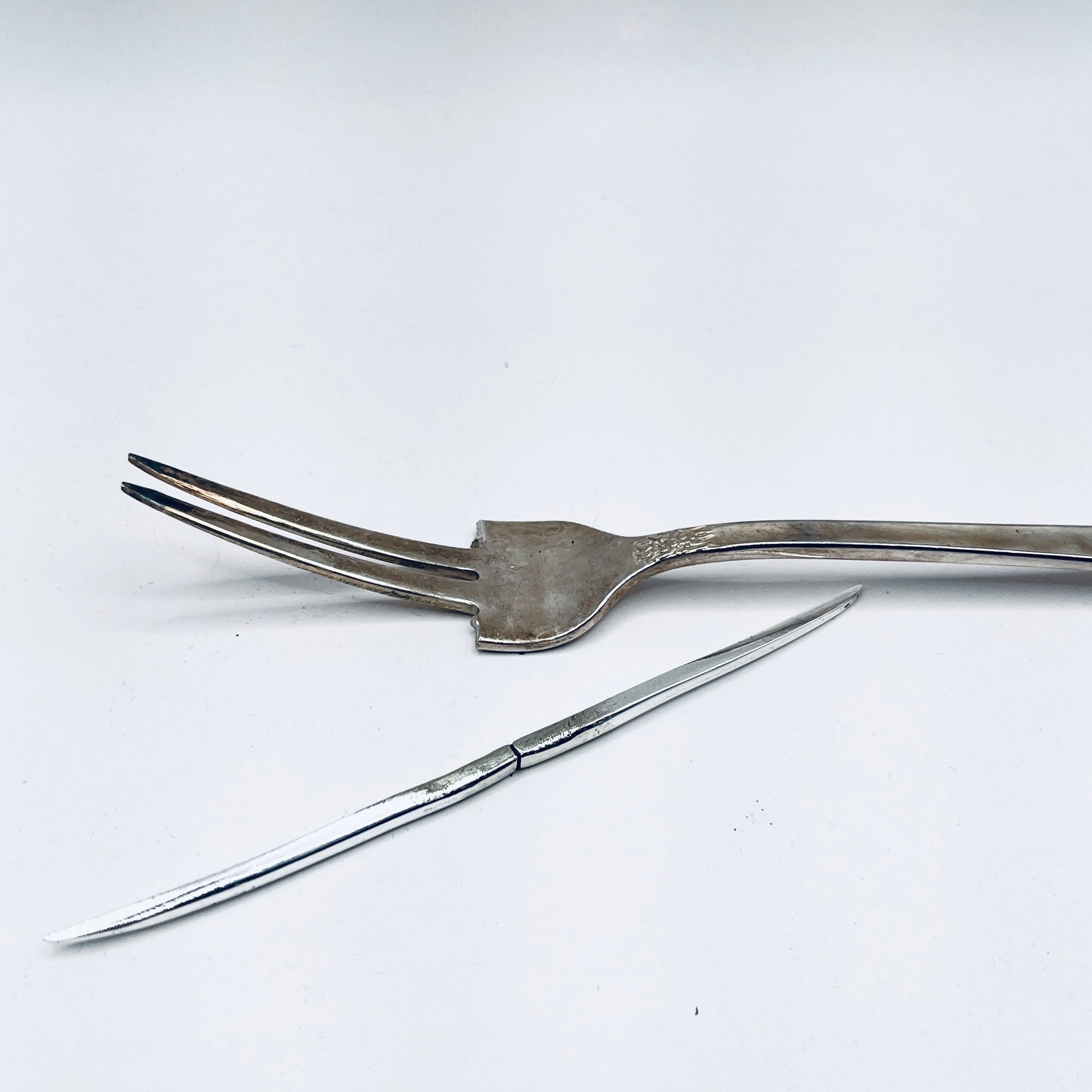 Scopri l’eleganza senza tempo di questo anello unico creato artigianalmente saldando e modellando due rebbi di un’antica forchetta da portata in lega d’argento risalente alla prima metà del Novecento.