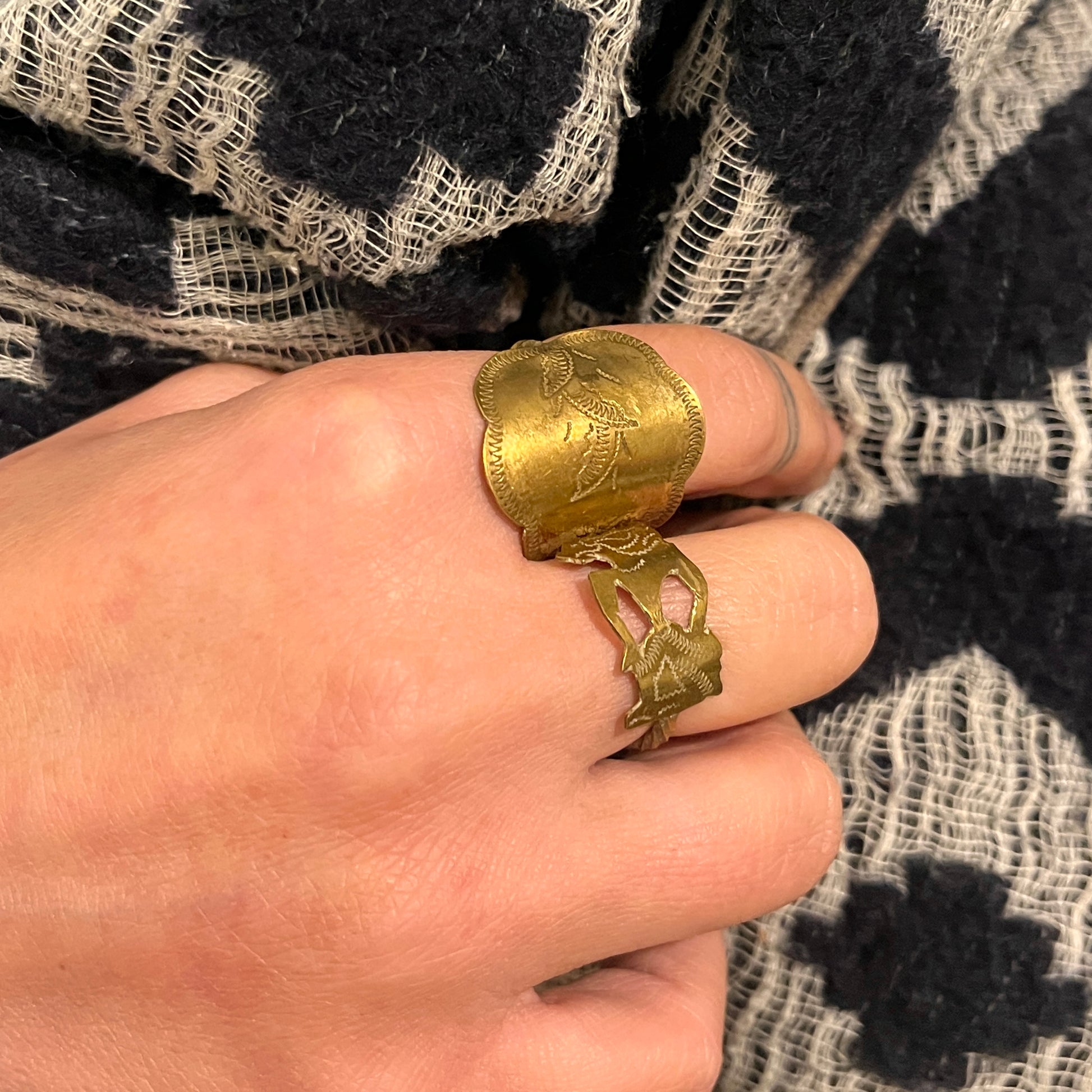 Anello Artigianale “Wayang Kulit” Mod. DOPPIO Realizzato con Antica posata in OTTONE (Prima Metà del ’900)