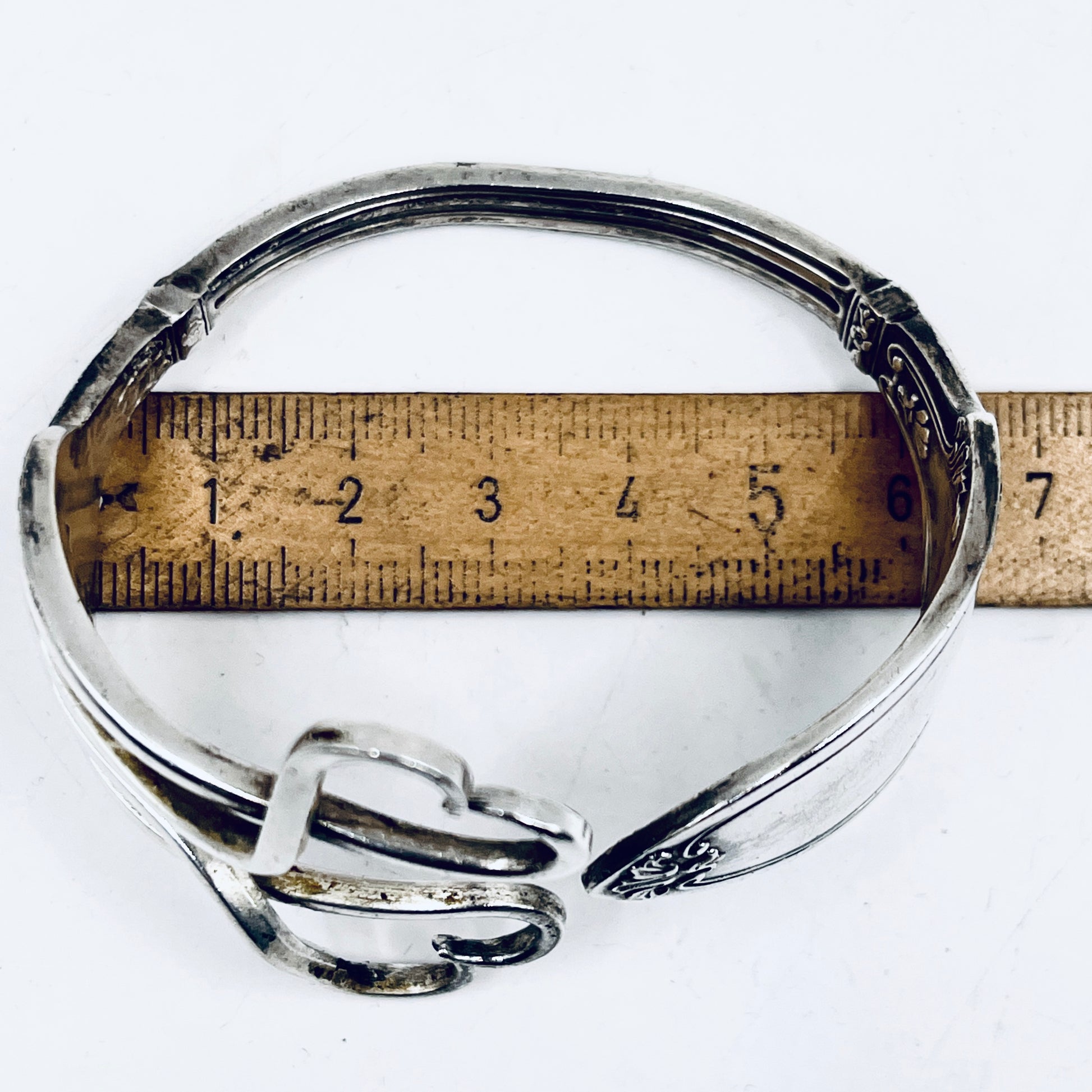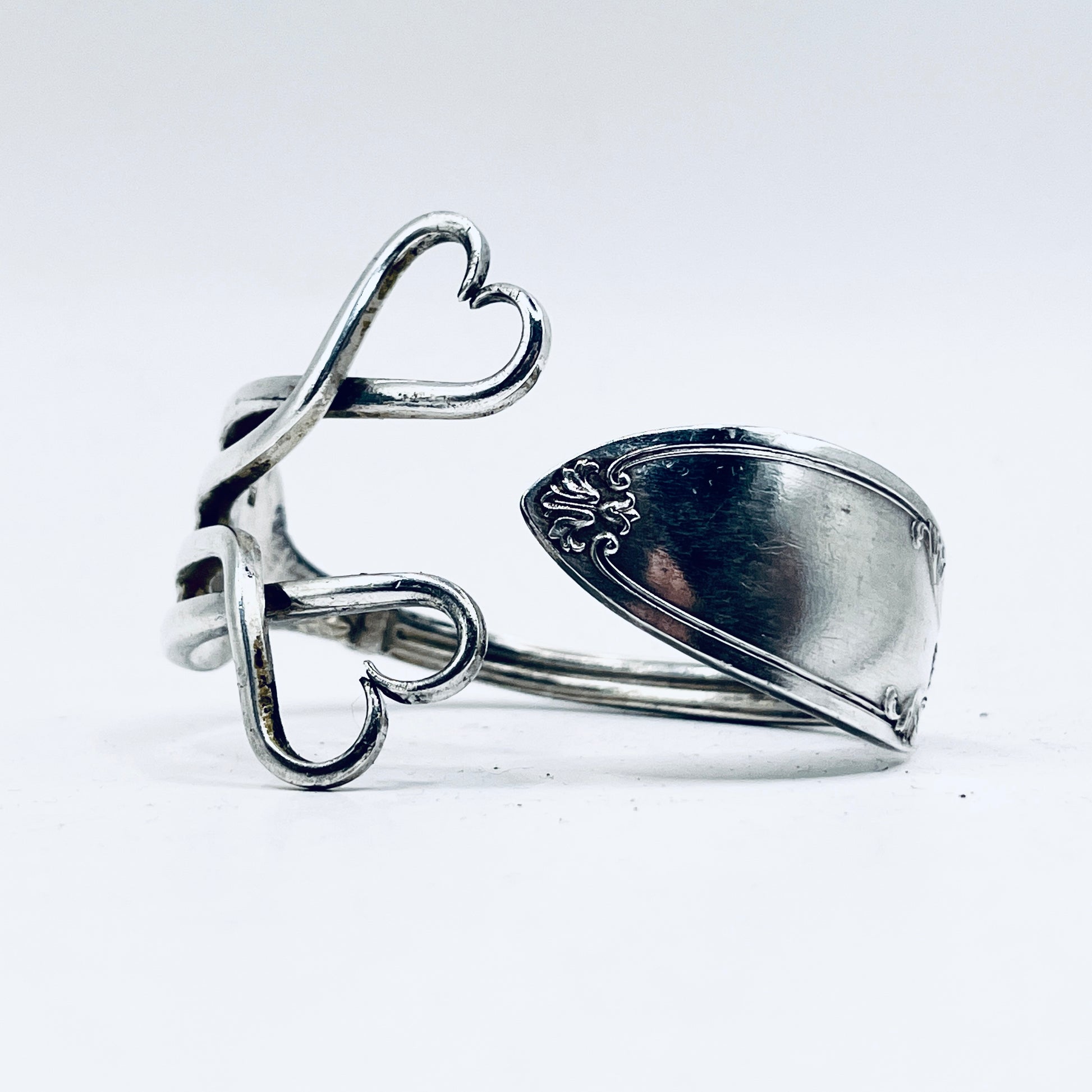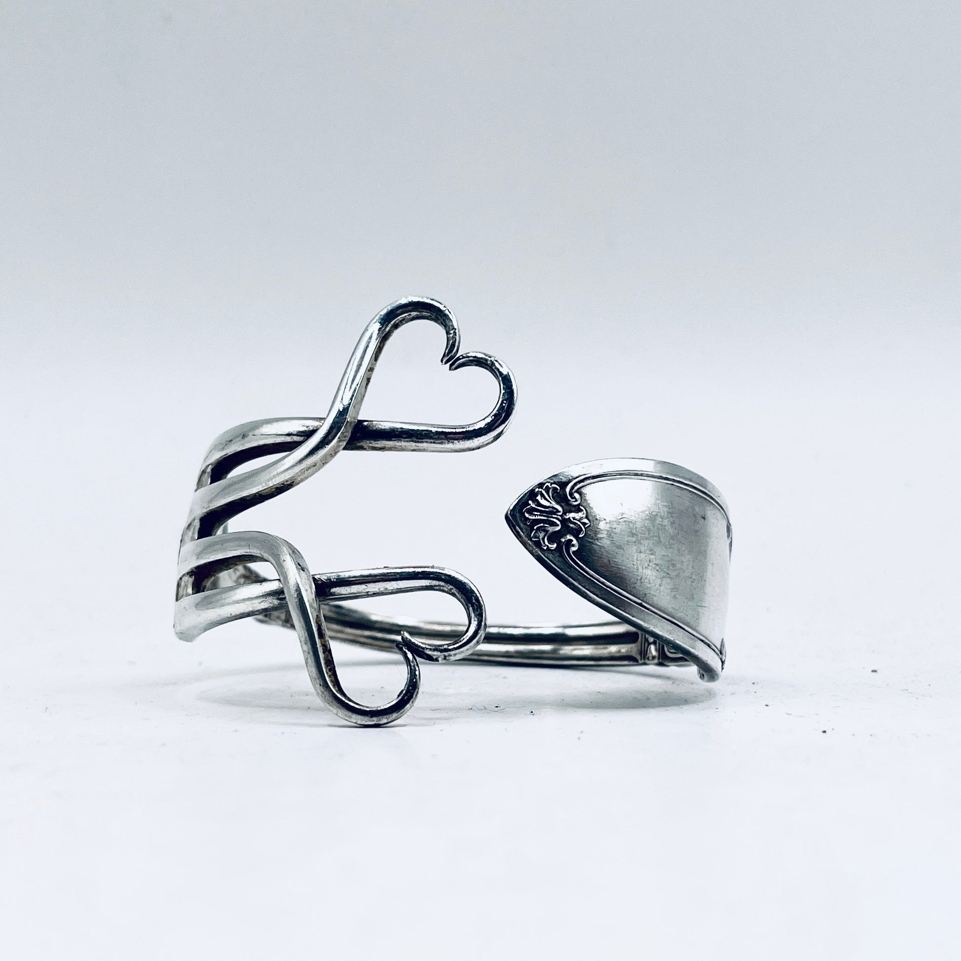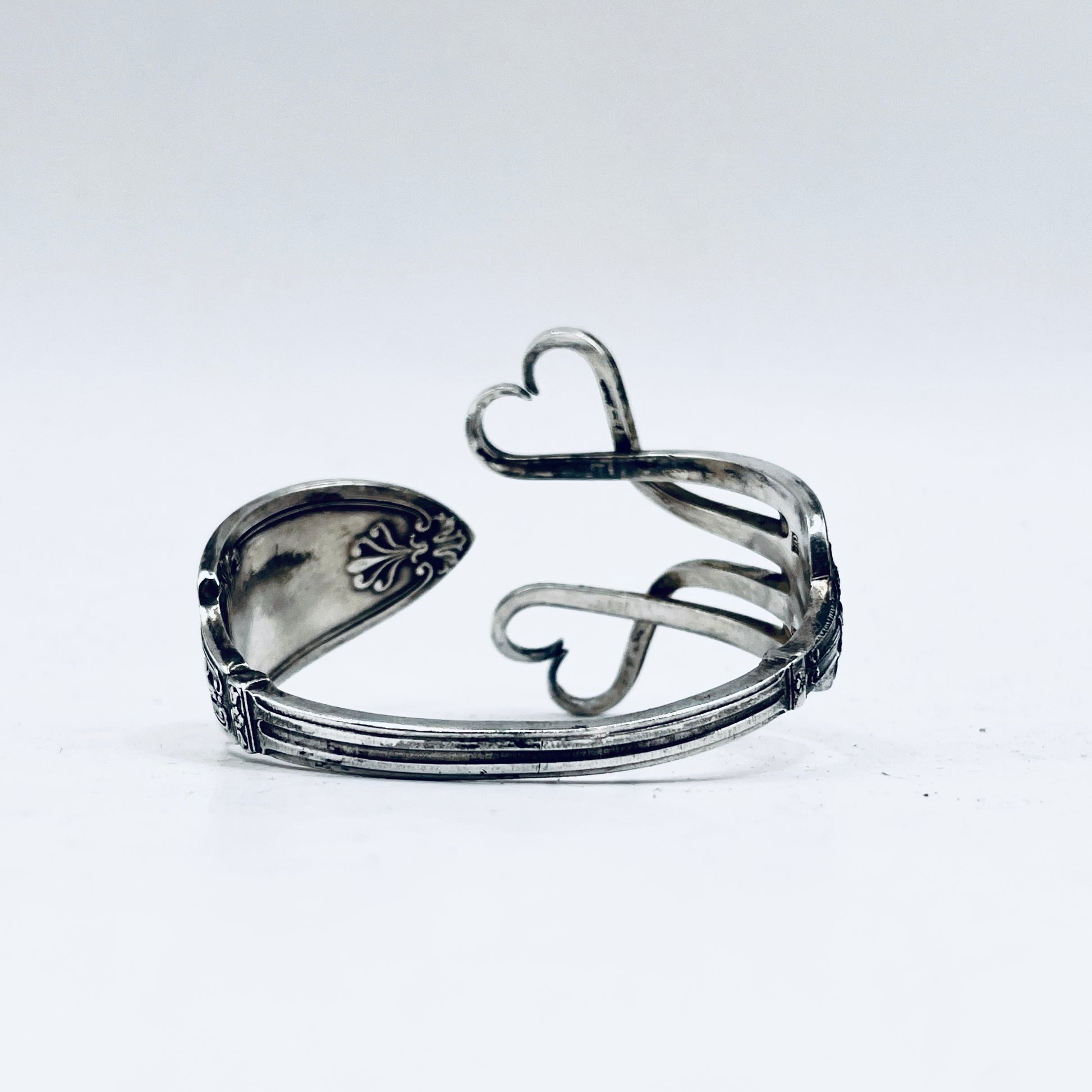 Bracciale Artigianale Mod. FORCHETTA CUORE DOPPIO Realizzato con Antica posata in lega d’argento (Prima Metà del ’900)