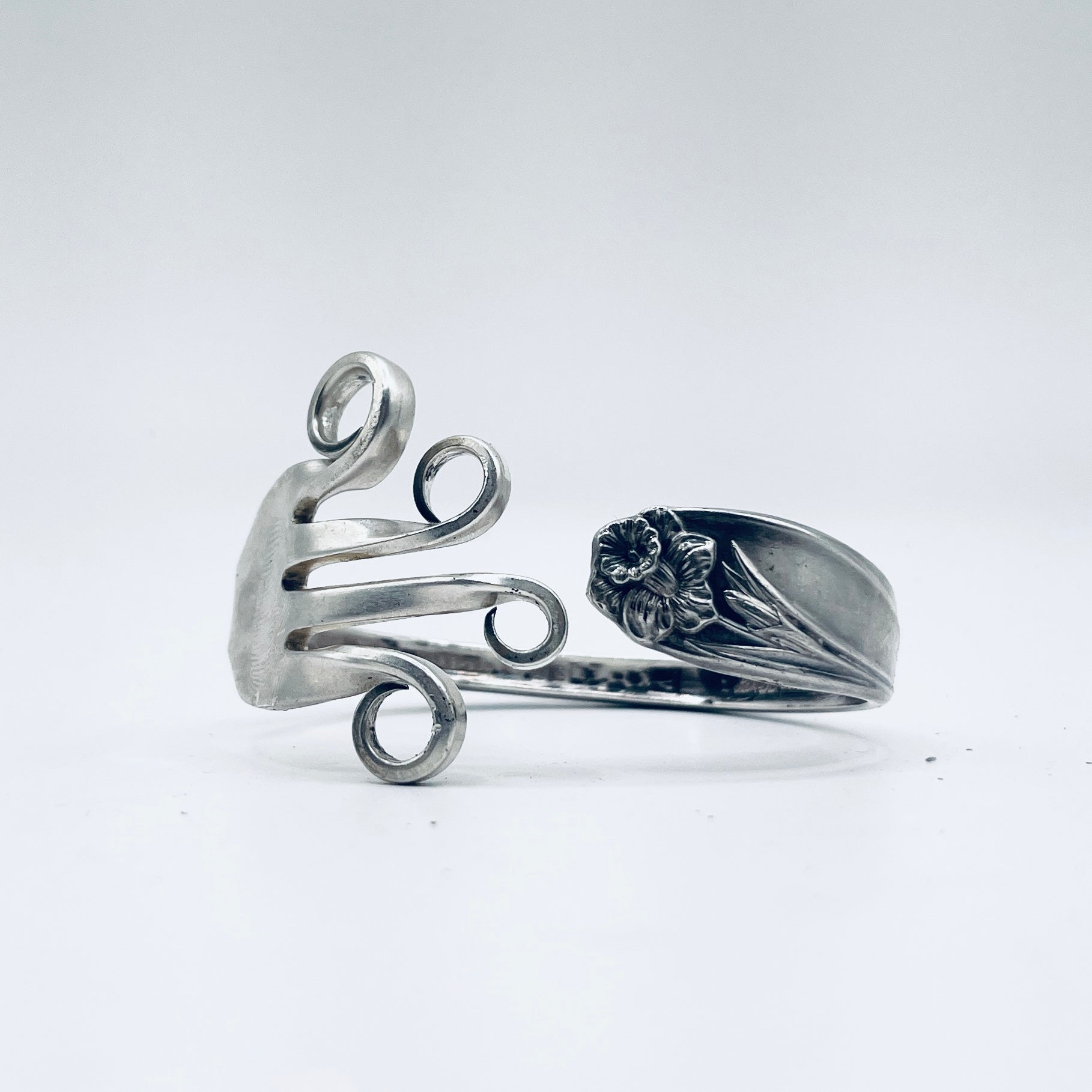 Bracciale Artigianale Mod. FORCHETTA NARCISO Realizzato con Antica posata in lega d’argento (Prima Metà del ’900)