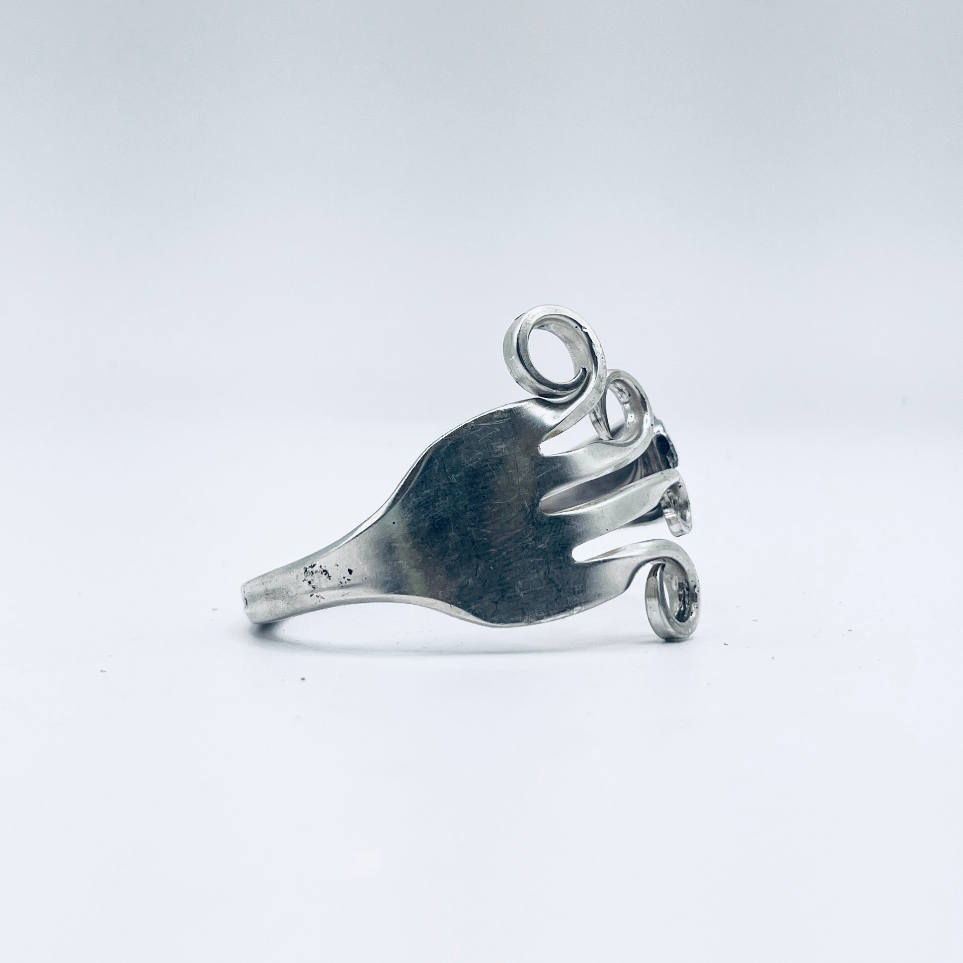Scopri l’eleganza senza tempo di questo bracciale unico creato artigianalmente utilizzando un’antica forchetta in lega d’argento, della prima metà del 900