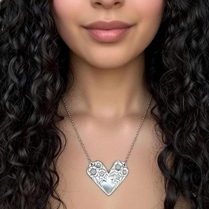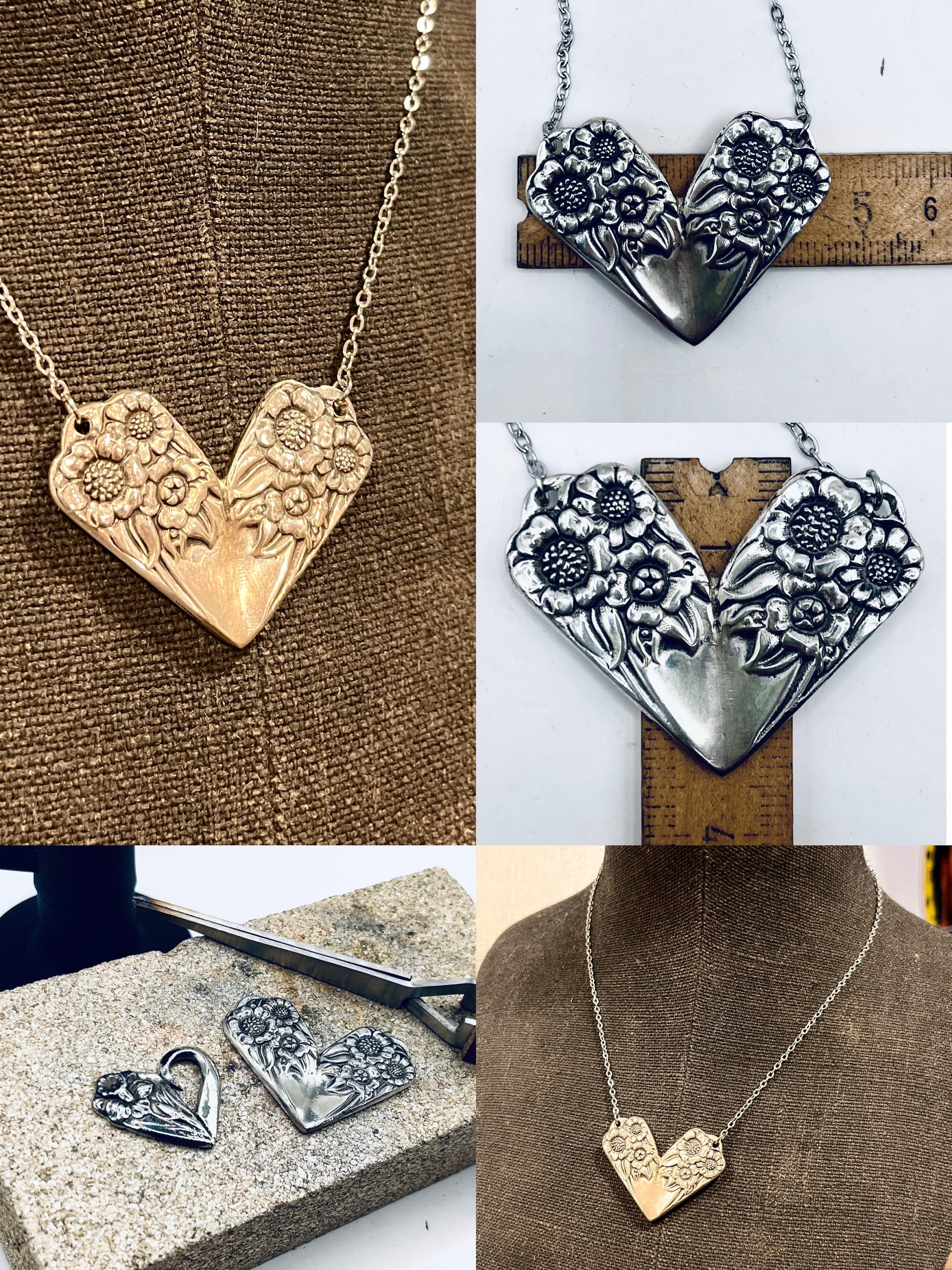 Pendente Artigianale Mod. CUORE SALDATO GIRASOLI Realizzato con Antica Posata in Argento (Prima Metà del ’900)