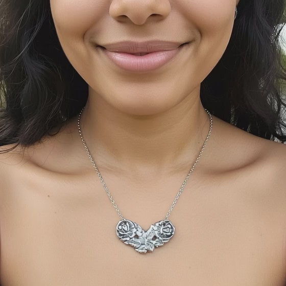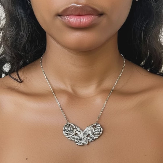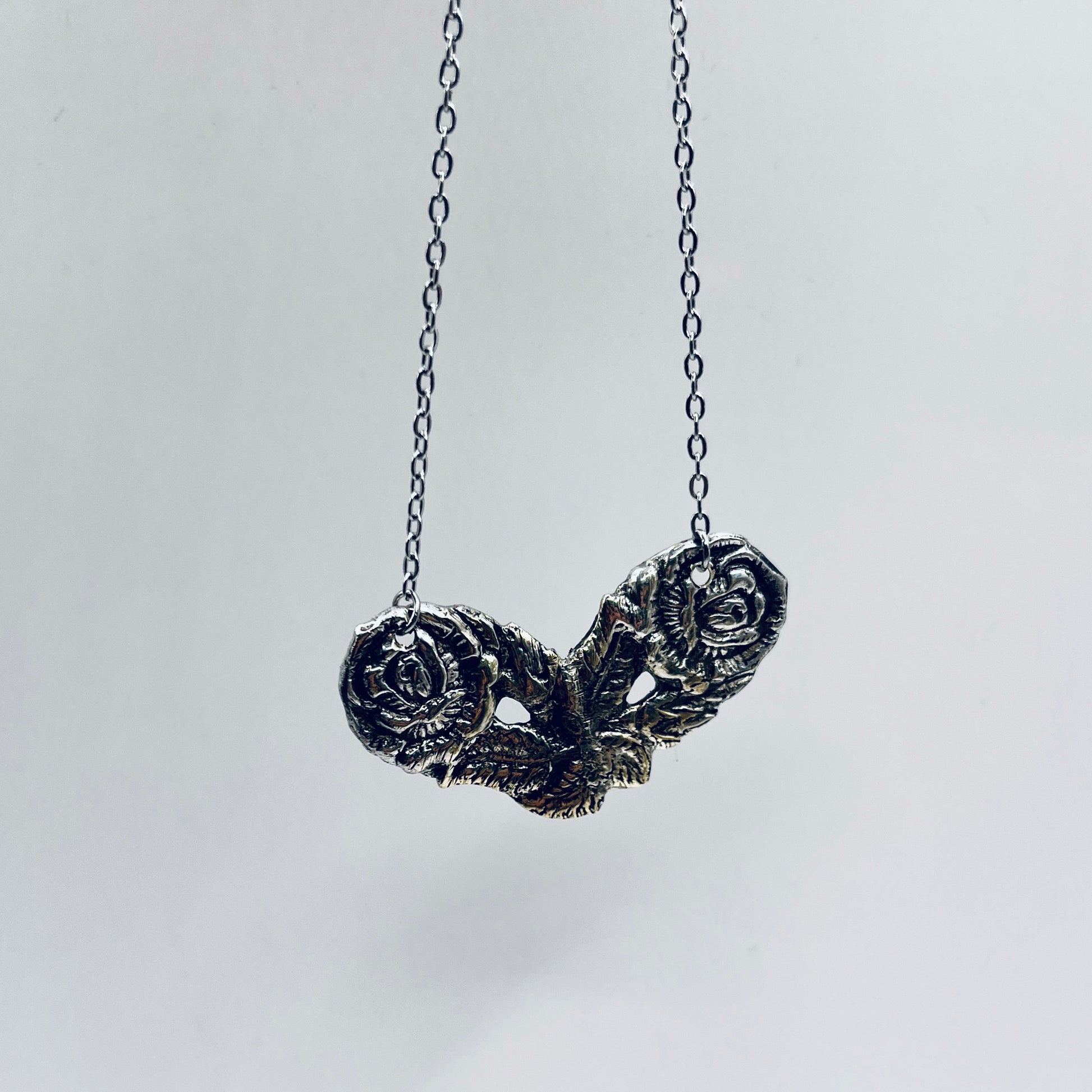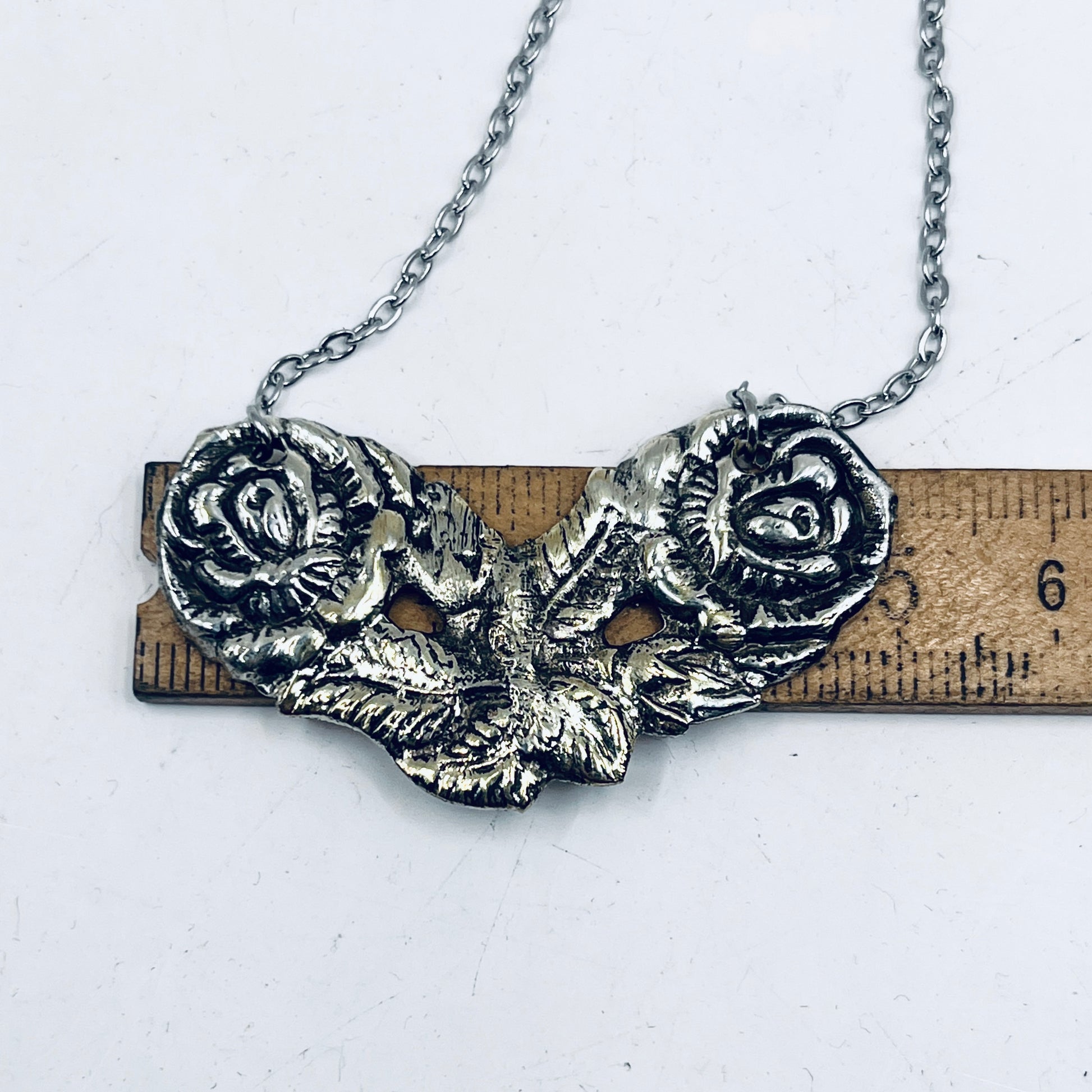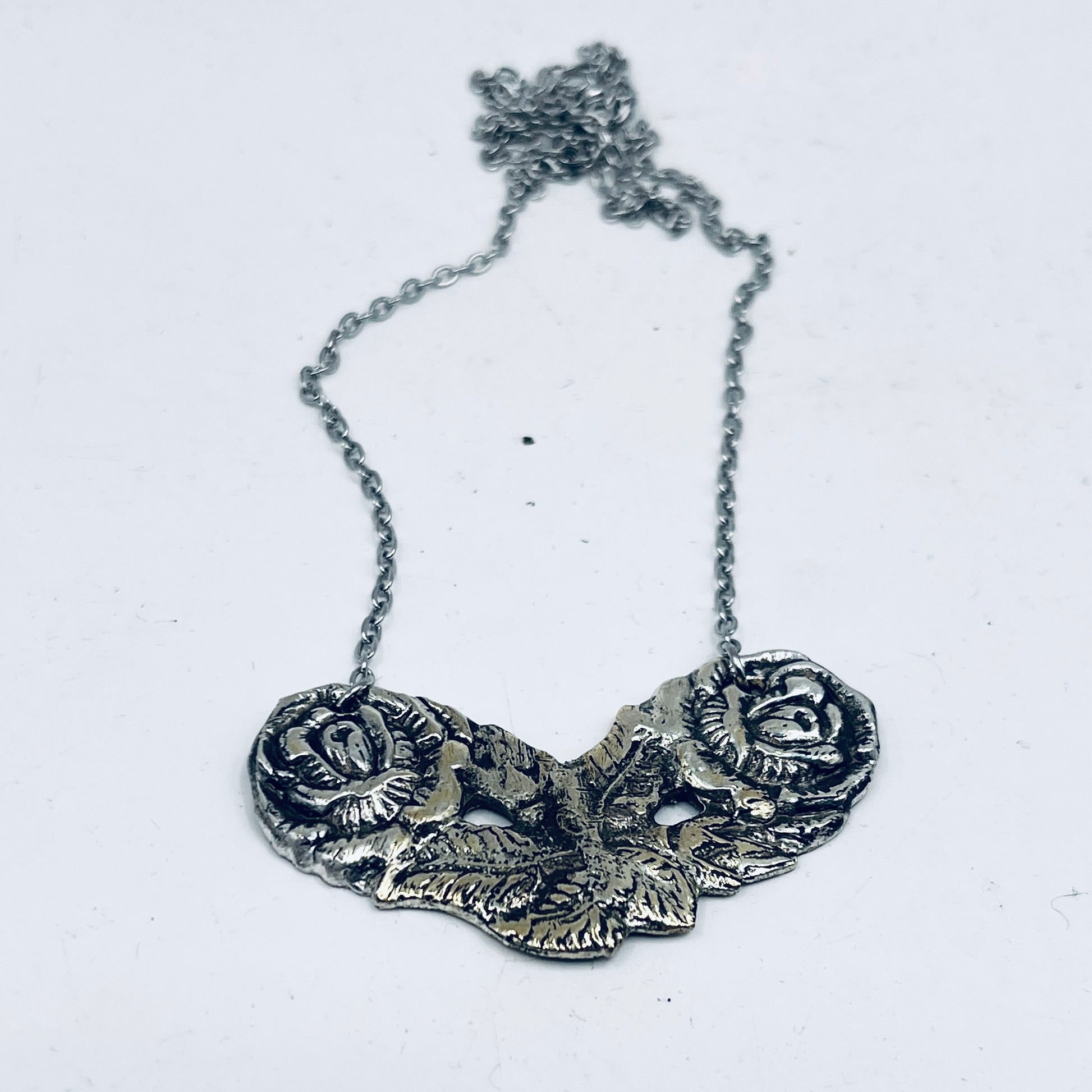 Scopri l’eleganza senza tempo di questo pendente unico creato artigianalmente saldando due manici di antiche forchette in lega d’argento risalenti alla prima metà del Novecento.